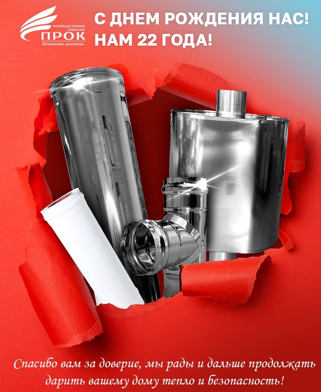 Двадцать два года мы не просто создаем дымоходные системы, мы бережно храним тепло и уют в ваших домах.