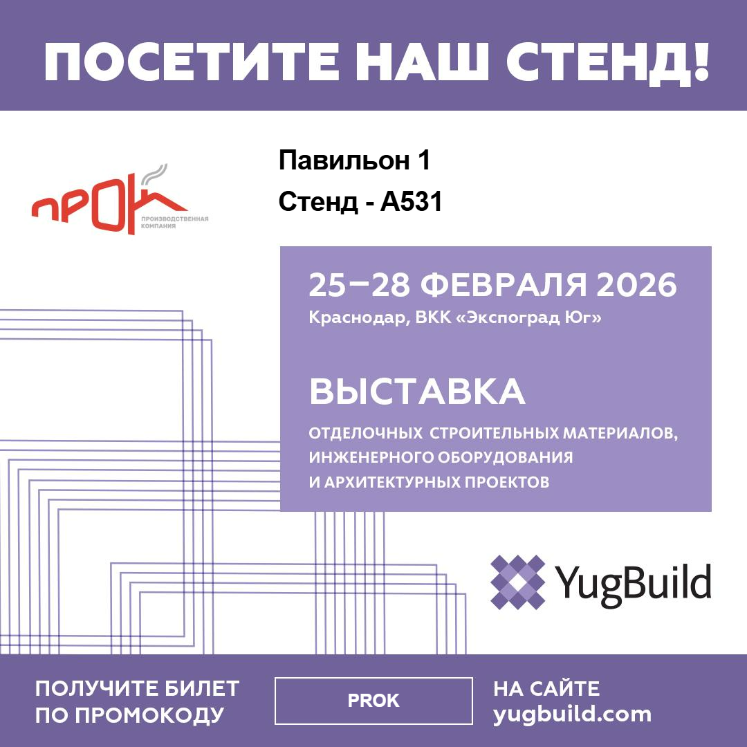 Рады сообщить, что компания «ПРОК» примет участие в крупнейшей на юге России выставке отделочных материалов, инженерного оборудования и архитектурных проектов —YugBuild 2026.Мероприятие пройдет с 25 по 28 февраля 2026 года в выставочном комплексе «Экспоград Юг» (Краснодар).
